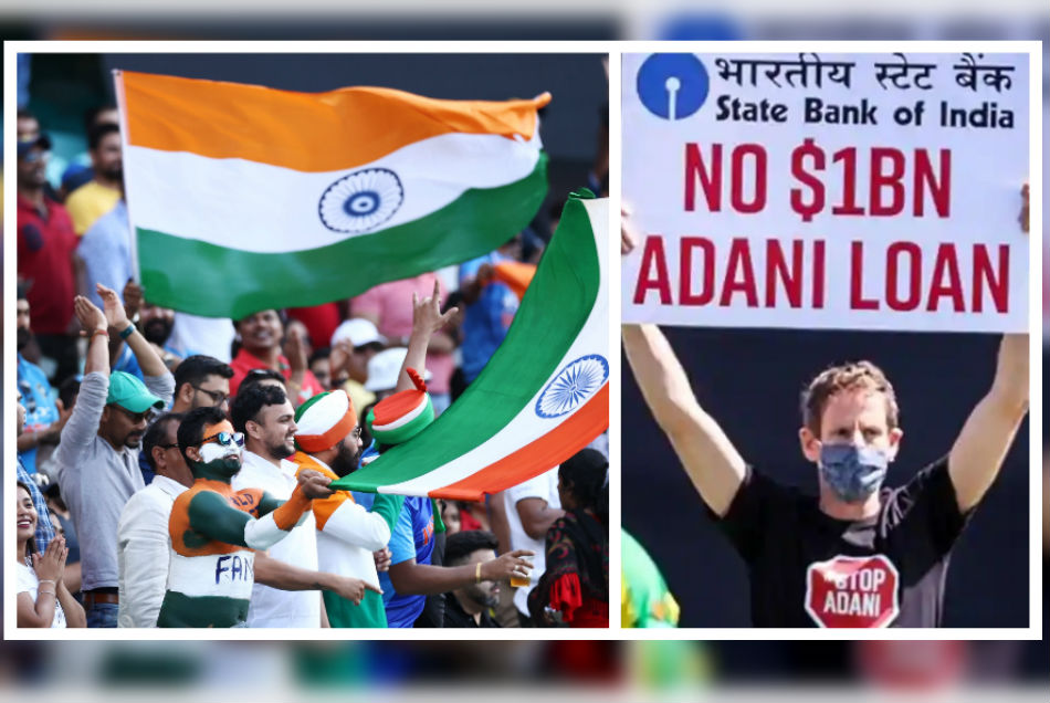 WATCH: Video of two #StopAdani supporters taking the grounds to protest @TheOfficialSBI's plans to give @AdaniOnline a bn (5000 crore) Indian taxpayer loan for Adani's Carmichael coal project #AUSvIND pic.twitter.com/NhY3vPN0HM
