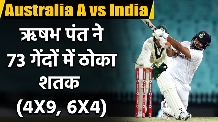ऋषभ पंत ने महज 72 गेंदों में अपना शतक पूरा किया और 9 चौके, 6 छक्कों की मदद से नाबाद 103 रन बना चुके हैं। इतना ही नहीं पंत ने अपना शतक पूरा करने के लिये दिन के आखिरी ओवर में 22 रन ठोंके और सेंचुरी पूरी की। इस ओवर में पंत ने 4 चौके और एक छक्का लगाने का काम किया।