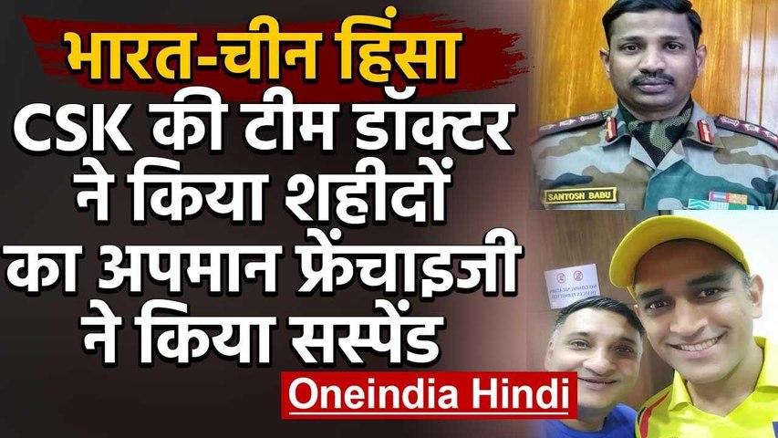 नई दिल्ली: इंडियन प्रीमियर लीग की फ्रैंचाइज़ी चेन्नई सुपर किंग्स ने बुधवार को अपनी टीम के डॉक्टर मधु थोत्ताप्पिल को निलंबित कर दिया, भारत चीन के बीच हालिया झड़प पर एक निजी ट्वीट के कारण फ्रैंचाइज़ी को लगा कि ट्वीट सही नहीं है।