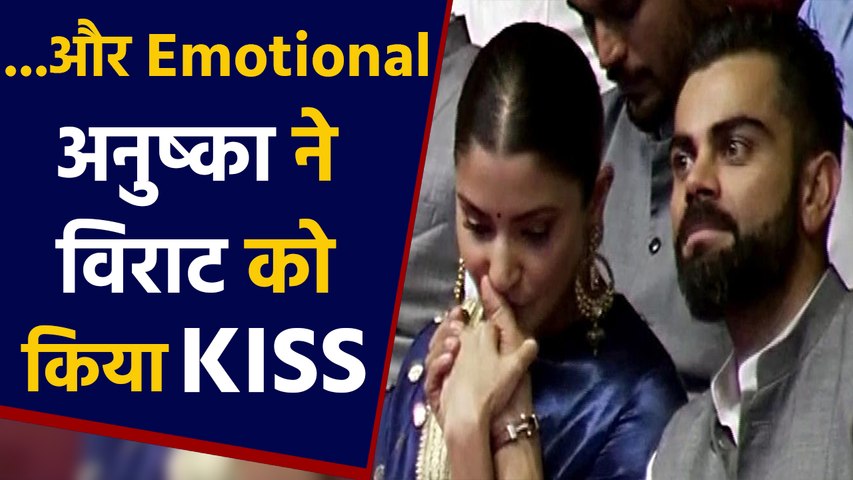 इस मौके पर पूरी टीम इंडिया और इंडियन क्रिकेट टीम के कोच रवि शास्त्री भी मौजूद थे। टीम को इस प्रोग्राम के बाद टी20 सीरीज के लिए धर्मशाला निकलना था। इस मौके पर विराट के साथ उनकी पत्नी अनुष्का शर्मा भी मौजूद थीं। विराट कोहली इस दौरान वाइट शर्ट के ऊपर जैकेट पहने नजर आए तो उनके साथ अनुष्का नीले सूट में थीं। अनुष्का इस दौरान काफी खूबसूरत नजर आईं। वह विराट के साथ काफी बातचीत भी करती दिखीं। इस जोड़ी की कई तस्वीरें सोशल मीडिया पर वायरल हो रही हैं। इन तस्वीरों के साथ एक वीडियो भी काफी वायरल हो रहा है जिसमें अनुष्का भावुक होकर विराट कोहली का हाथ चूमती हुई नजर आ रही हैं।