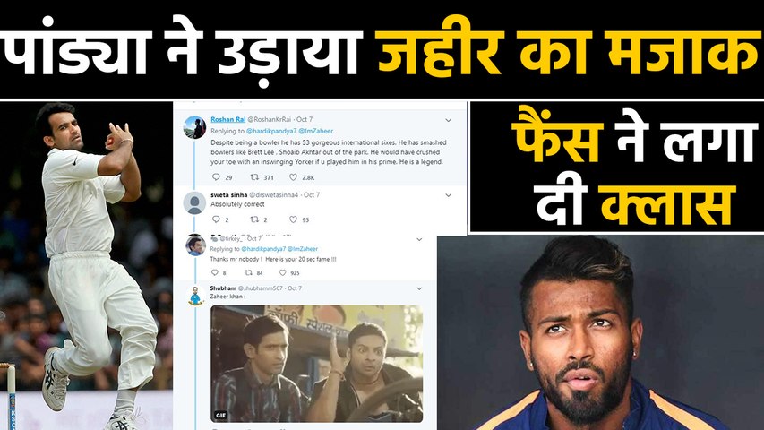 हालांकि इस बीच जहीर खान ने भी हार्दिक पांडया के ट्वीट का जबरदस्त जवाब दिया। जहीर खान ने ट्वीट किया,' हाहाहा! तुम्हारी शुभकामनाओं के लिए धन्यवाद, यह सच है कि मेरी बल्लेबाजी की कला तुम्हारे जितनी अच्छी कभी नहीं हो सकती लेकिन मेरा बिल्कुल उतनी ही शानदार रहा, जितनी शानदार इस मैच में मेरी अगली गेंद थी, जिसका तुम्हे सामना करना पड़ा।'