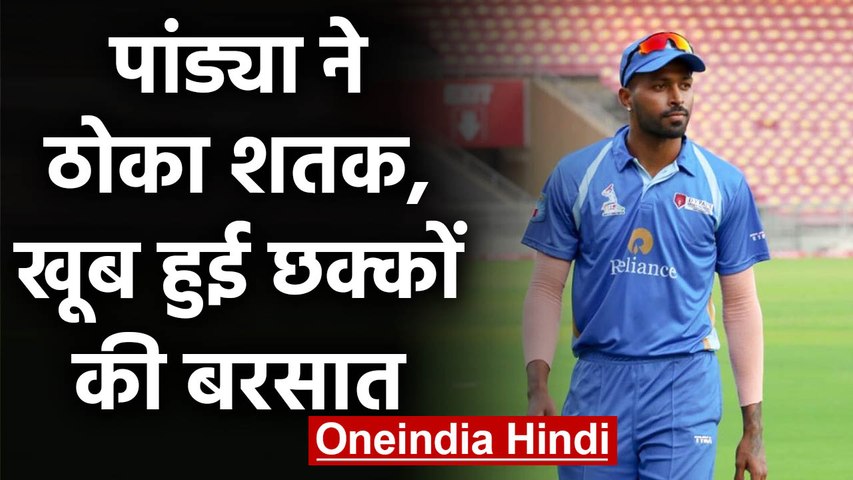 मंगलवार को खेले गये मैच में हार्दिक पांड्या ने 39 गेंद में 10 छक्के और आठ चौके की मदद से 105 रनों की आतिशी पारी खेली जिसके दम पर रिलायंस वन की टीम ने पहली पारी 252 रन बनाये। वहीं दूसरी पारी में गेंदबाजी करते हुए हार्दिक पांड्या ने 5 विकेट भी झटके और विरोधी टीम को महज 151 रन पर समेट दिया और टीम को 101 रनों की बड़ी जीत दिलाई।