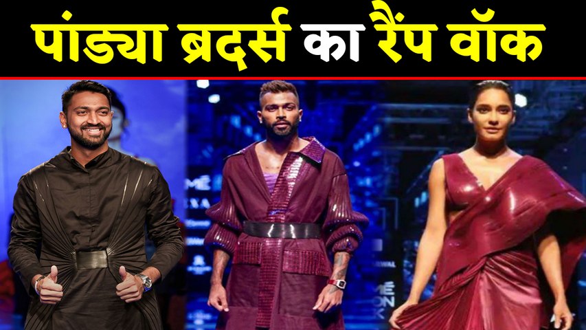 अमित अग्रवाल के कलेक्शन के लिए हार्दिक के अलावा उनके भाई कुणाल पांड्या भी रैंप पर वॉक करते दिखे। हार्दिक ने मरून कलर का शाइनी ओवरकोट पहन रखा था जिसे उन्होंने मैचिंग कलर के कॉटन पैंट्स और शाइनी शूज के साथ टीमअप कर पहना था।