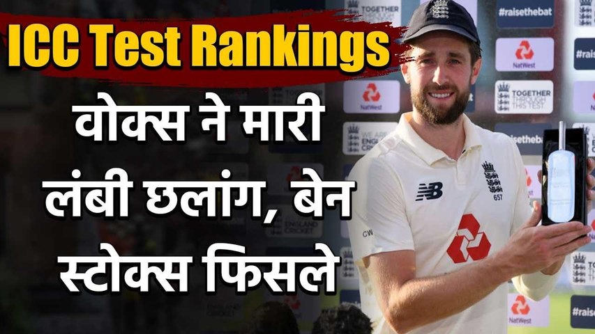 आईसीसी की टेस्ट रैंकिंग में क्रिस वोक्स को 2 पायदान का फायदा हुआ है और वो 273 प्वाइंटस के साथ 7वें स्थान पर पहुंच गये हैं। इस लिस्ट में भारत के आर अश्विन 281 प्वाइंटस के साथ 5वें स्थान पर काबिज हैं। वहीं इस रैंकिंग में इंग्लैंड के तेज गेंदबाज स्टुअर्ट ब्रॉड को भी फायदा हुआ है और वो टॉप 10 में शामिल हो गये हैं। पिछली रैंकिंग में वह 11वें पायदान पर काबिज थे लेकिन पाकिस्तान के खिलाफ मैच में शानदार प्रदर्शन की बदौलत वह टॉप 10 में शामिल हो गये हैं।