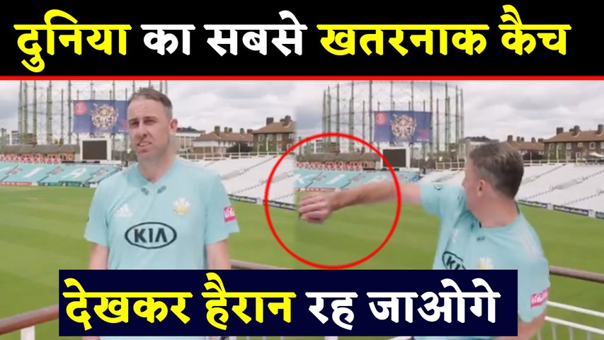 दरअसल, सर्रे काउंटी क्रिकेट क्लब के रिक्की क्लार्क एशेज सीरीज पर इटरव्यू दे रहे थे। बल्लेबाज ने शॉट खेला और ग्राउंड से बॉल बाहर निकलते हुए कैमरे की तरफ आने लगी। जिसको रिक्की ने पकड़ लिया। हुआ ऐसा कि क्लार्क ड्रेसिंग रूम की बालकनी में खड़े हैं। तभी मैदान से गेंद उनकी ओर आती है। क्लार्क की पीठ उस ओर है। उन्हें नहीं पता कि गेंद किस रफ्तार से आ रही है और कहां पर है। वह पीछे सिर घुमाते हैं और गेंद को अपने दाएं हाथ से लपक लेते हैं।