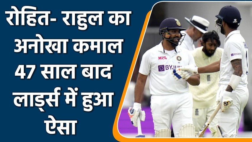 दरअसल, इस जोड़ी ने 21वें ओवर की तीसरी गेंद पर चाैका बटोरते हुए 50 रनों की साझेदारी पूरी की। इसी के साथ 1952 के बाद पहली बार ऐसा हुआ है कि लाॅर्ड्स के किसी टेस्ट मैच की पहली पारी में किसी भारतीय सलामी जोड़ी ने अर्धशतकीय साझेदारी की हो। यानी कि 69 साल बाद लॉर्ड्स मैदान में हुए टेस्ट मैच की पहली पारी में भारतीय सलामी जोड़ी 50 से अधिक रनों की साझेदारी करने में सफल हुई है। इसके अलावा रोहित-राहुल इंग्लैंड के खिलाफ उसी की धरती पर पहली पारी में सबसे बड़ी साझेदारी करने वाली दुनिया की दूसरी जोड़ी भी बन गई है। एम स्लेटर व मार्क टेलर पहले स्थान पर हैं जिन्होंने इंग्लैंड के खिलाफ उसी की धरती पर 1993 में 128 रनों की साझेदारी की थी।