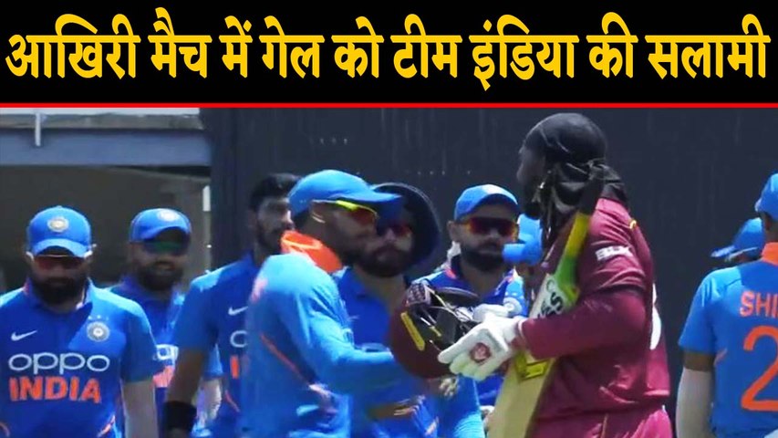 इसके बाद भारतीय टीम ने गेल का गर्मजोशी के साथ अभिनंदन किया। विराट कोहली समेत अन्य भारतीय क्रिकेटर गेल के आसपास एकत्र हो गए और उनको शानदार विदाई दी। इस दौरान स्टेडियम में मौजूद दर्शक भी भावुक हो गए और खड़े होकर गेल के लिए तालियां बजाने लगे। गेल ने पवेलियन लौटते हुए चिर-परिचित अंदाज में बल्ला पर हेलमेट लगातार दर्शको का अभिनंदन स्वीकार किया।