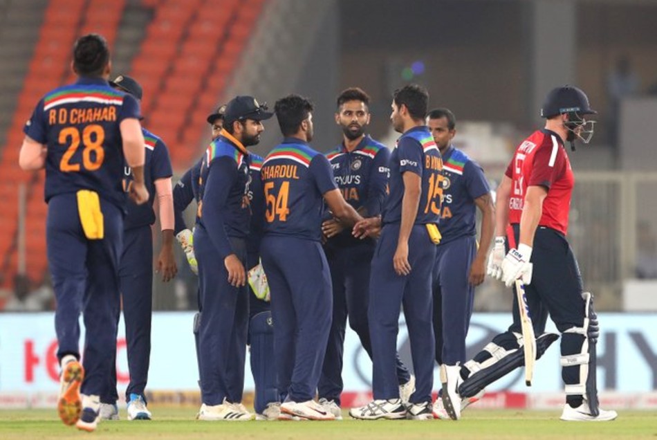 India vs England 5th T20I India Won the Decider by 36 runs beats England in T20I Series by 3-2: नई दिल्ली। भारत और इंग्लैंड के बीच जारी 5 मैचों की टी20 सीरीज का आखिरी और निर्णायक मैच आज अहमदाबाद के मोटेरा स्टेडियम पर खेला गया, जहां पर भारतीय टीम ने पहले बल्लेबाजी में शानदार प्रदर्शन किया और फिर गेंदबाजी में दमदार प्रदर्शन करते हुए मैच में जीत हासिल की और टी20 सीरीज को 3-2 से अपने नाम किया। भारतीय टीम को एक बार फिर टॉस में हार का सामना करना पड़ा लेकिन पहले बल्लेबाजी करते हुए उसने 224 रनों का विशाल स्कोर खड़ा किया। भारतीय टीम की ओर से पहले सलामी बल्लेबाज रोहित शर्मा ने 64 रनों की पारी खेली तो वहीं पर कप्तान विराट कोहली ने भी नाबाद 80 रनों का योगदान दिया।