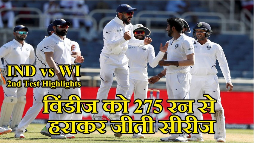 दूसरी पारी में भारत ने अजिंक्य रहाणे के 64 और हनुमा विहारी के शानदार 53 रनों की बदौलत वेस्टइंडीज के सामने कुल 468 रनों का विशाल स्कोर खड़ा किया। लक्ष्य का पीछा करने उतरी वेस्टइंडीज की टीम दूसरी पारी में 210 रनों पर ऑलआउट हो गई और टीम इंडिया ने चौथे दिन ही जीत दर्ज कर ली। दूसरी पारी में विंडीज टीम के सलामी बल्लेबाज ब्रैथवेट और कैम्पबेल जल्दी आउट हो गए।