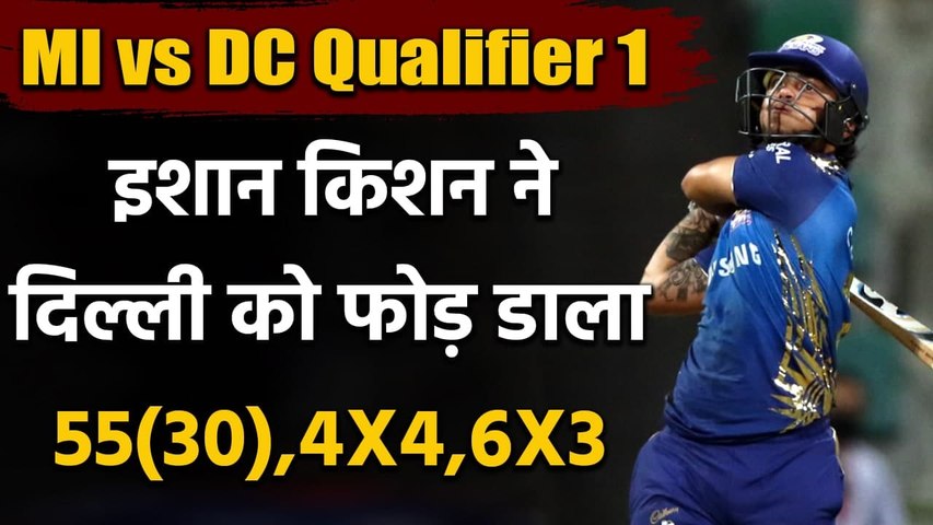 नई दिल्ली। इंडियन प्रीमियर लीग के 13वें सीजन का पहला क्वालिफायर मैच आज दुबई के मैदान पर दिल्ली कैपिटल्स और मुंबई इंडियंस की टीम के बीच खेला जा रहा है, जहां पर दिल्ली की टीम ने टॉस तो जीता लेकिन पहले बल्लेबाजी करते हुए मुंबई की टीम ने 200 रनों का विशाल स्कोर खड़ा किया। अब दिल्ली की टीम को जीत के लिये 201 रनों की दरकार है। मुंबई की टीम के लिये आज इशान किशन और हार्दिक पांड्या ने शानदार बल्लेबाजी की औऱ आखिरी के 3 ओवर्स में 55 रन बटोरे और जो स्कोर 160-170 के बीच सीमित होता नजर आ रहा था उसे 200 तक ले गये।