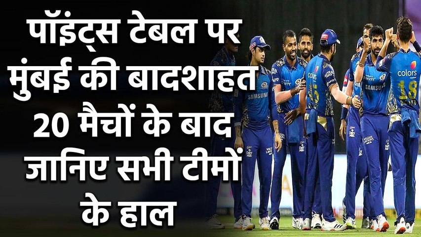 20वें मैच के बाद, आईपीएल की अंक तालिका -