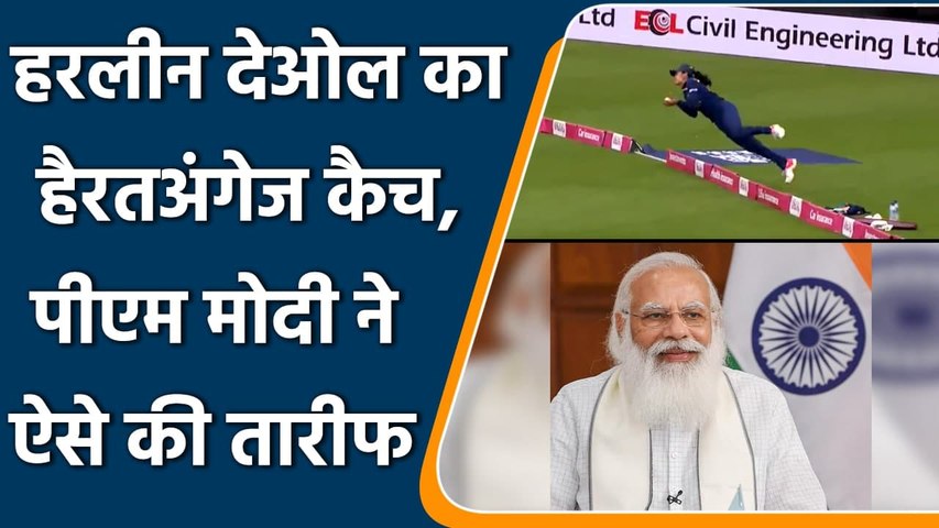 भारत सरकार ने सोशल मीडिया पर वीडियो शेयर करते हुए लिखा, "आप इसे बिल्कुल मिस नहीं कर सकते! भारत की हरलीन देओल ने नॉर्थम्प्टन में पहले टी 20 आई के दौरान इंग्लैंड की एमी जोन्स को आउट करने के लिए महिला क्रिकेट के इतिहास में सबसे आश्चर्यजनक कैच में से एक लिया!"