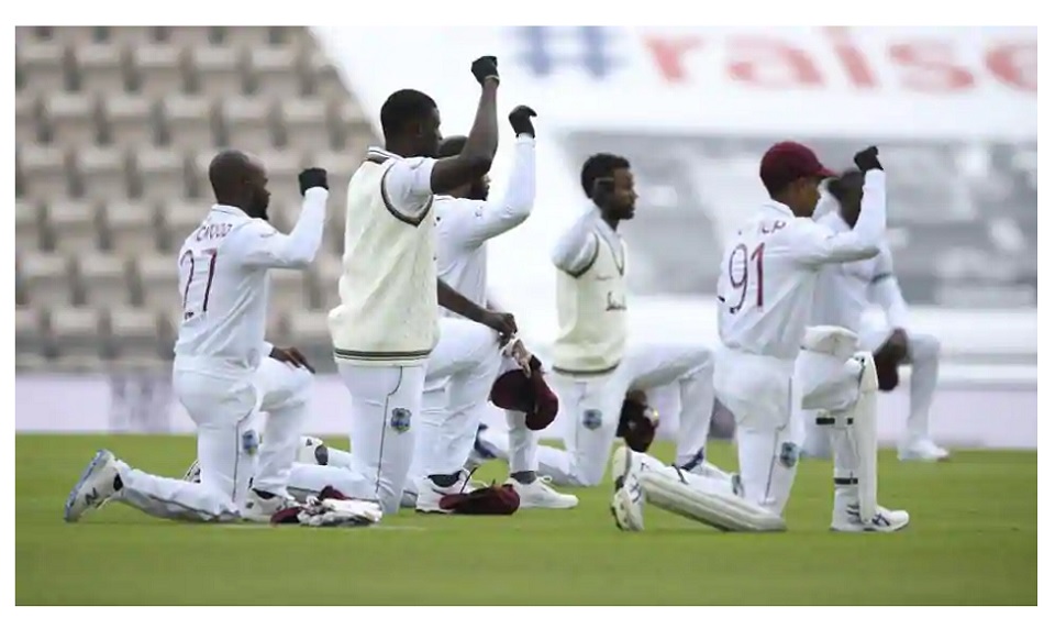 ENG vs WI: 'ब्लैक लाइव्स मैटर' के सपोर्ट में घुटनों के बल बैठे दोनों टीमों के खिलाड़ी
