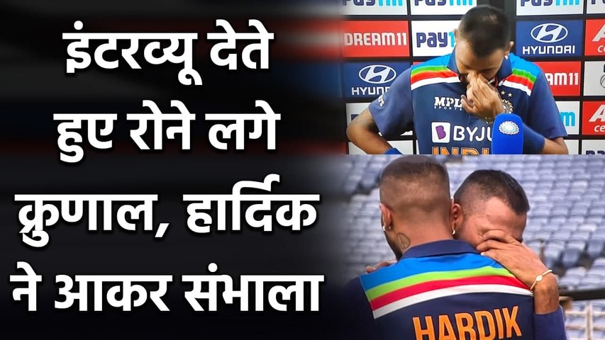 दरअसल, 16 जनवरी को पांड्या ब्रदर्स के पिता हिमांशु पांड्या का दिल का दाैरा पड़ने से निधन हो गया था। ऐसे में अपने डेब्यू मैच में क्रुणाल अपने पिता की याद में भावुक होकर अपने आंसू नहीं रोक सके। क्रुणाल इंटरव्यू नहीं दे सके। वह सिर्फ इतना ही कह पाए कि उनकी पारी पिता को समर्पित है। इसके बाद क्रुणाल फूट-फूटकर रोने लगे जिस कारण इंटरव्यू बीच में ही रोकना पड़ा। तभी क्रुणाल को संभालने के लिए उनके छोटे भाई हार्दिक पांड्या आए। हार्दिक ने क्रुणाल को फिर गले लगाकर हाैसला दिया।
