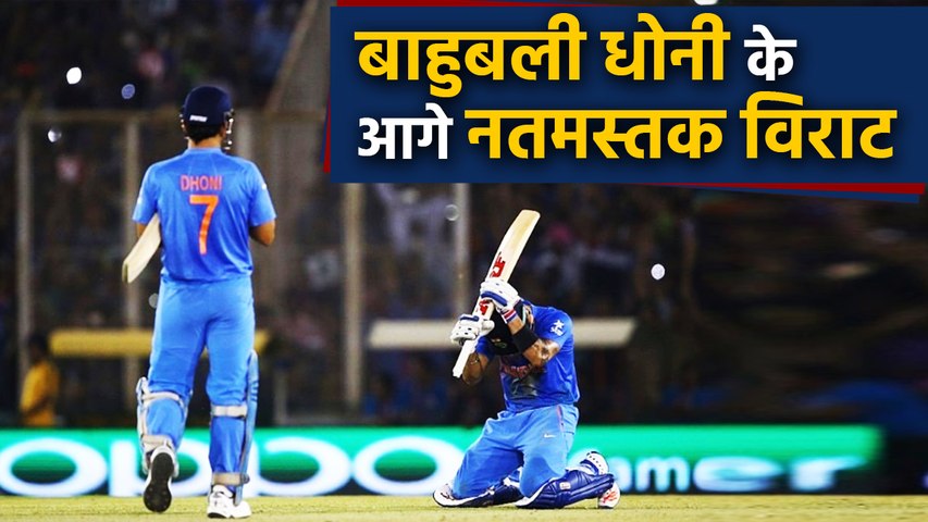तस्वीर में कोहली घुटनों के बल धोनी के आगे झुकते हुए नजर आए हैं। कोहली ने तस्वीर शेयर करते लिखा, "एक ऐसा खेल जिसे मैं कभी नहीं भूल सकता। वो रात खास थी। इस शख्स ने मुझे फिटनेस टेस्ट की तरह दौड़ाया।" बता दें कि ये तस्वीर ऑस्ट्रेलिया के खिलाफ 2016 वर्ल्ड टी-20 में जीत के बाद की है। इस मुकाबले में भारत ने 6 विकेट रहते मैच अपने नाम कर लिया था। 27 मार्च 2016 को मोहाली में हुए एस मैच में जीत के साथ भारत सेमीफाइनल में पहुंचा था।