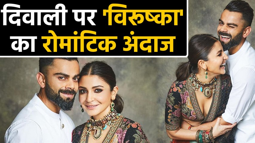 अनुष्का फोटो में शानदार ड्रेस पहने नजर आ रही हैं। उनकी स्मोकि आइज उनके आउटफिट के साथ परफेक्ट मैच कर रहा है। अनुष्का ने इस दौरान चोकर के साथ इयरिंग्स पहने हुए थे। वहीं विराट कोहली ने सफेद कलर के ड्रेस में दिख रहे हैं। इस फोटे को शेयर करते हुए विराट कोहली ने लिखा,''सभी को हैप्पी दिवाली। इस त्योहार की रौशनी आपके जिंदगी को भी रौशन करे और लाइफ में प्यार और शांति लेकर आए।'' इन फोटो में दोनों मस्ती के मूड में दिख रहे हैं।