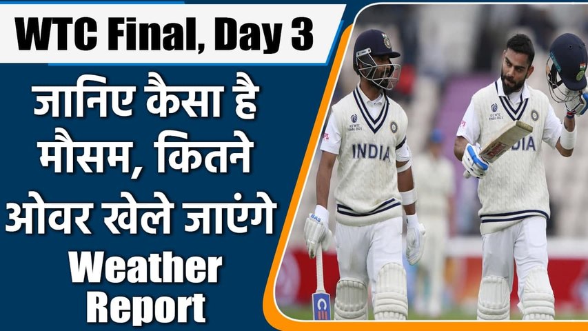 accuweather.com के अनुसार, तीसरे दिन की स्थिति क्रिकेट के अनुकूल नहीं होगी क्योंकि दिन के खेल का एक बड़ा हिस्सा धुल जाने की उम्मीद है। आसमान में काले बादल छाए रहेंगे, साथ ही बारिश की संभावना काफी रहेगी। सबसे बड़ा खतरा सुबह के सत्र को लेकर है। हालांकि खोए समय की भरपाई के लिए एक रिजर्व डे है लेकिन हर दिन मौसम की मार के चलते शायद एक रिजर्व डे भी कम पड़े। वैसे उम्मीद है पिच पर परिणाम थोड़े गेम से ही निकल आएगा।