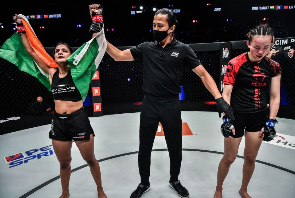 ONE: BATTLEGROUND में कदम रखने से पहले भारतीय रेसलिंग सुपरस्टार ऋतु "द इंडियन टाइग्रेस" फोगाट पर अच्छा प्रदर्शन करने का बहुत दबाव था, लेकिन चीन की एमएमए स्टार को हराकर उन्होंने भारतीय फैन्स की उम्मीदों को बरकार रखा है। उन्होंने तीन राउंड तक चले जबरदस्त एक्शन के बाद एटमवेट MMA मुकाबले में सर्वसम्मत निर्णय से चीनी प्रतिद्वंदी को हराकर एक बार फिर से जीत की लय प्राप्त की।