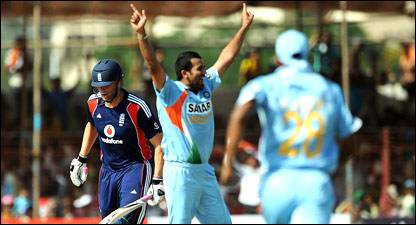 जवाब में इंग्लैंड ने काफ़ी ख़राब शुरुआत की और एक समय सिर्फ़ 76 रन पर पाँच विकेट गँवा दिए. ज़हीर ख़ान ने शानदार गेंदबाज़ी की और इंग्लैंड के टॉप आर्डर को पवेलियन भेज दिया.